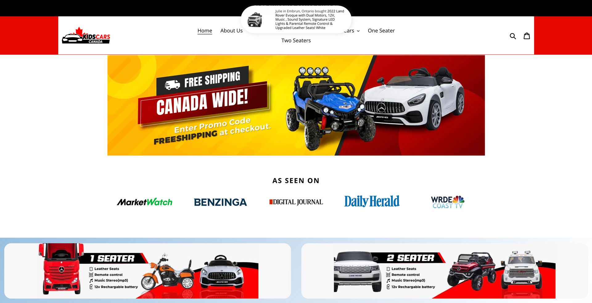 Kids Cars Canada is running their store on Shopify, and they are using Fomo to showcase recent purchases to new visitors.