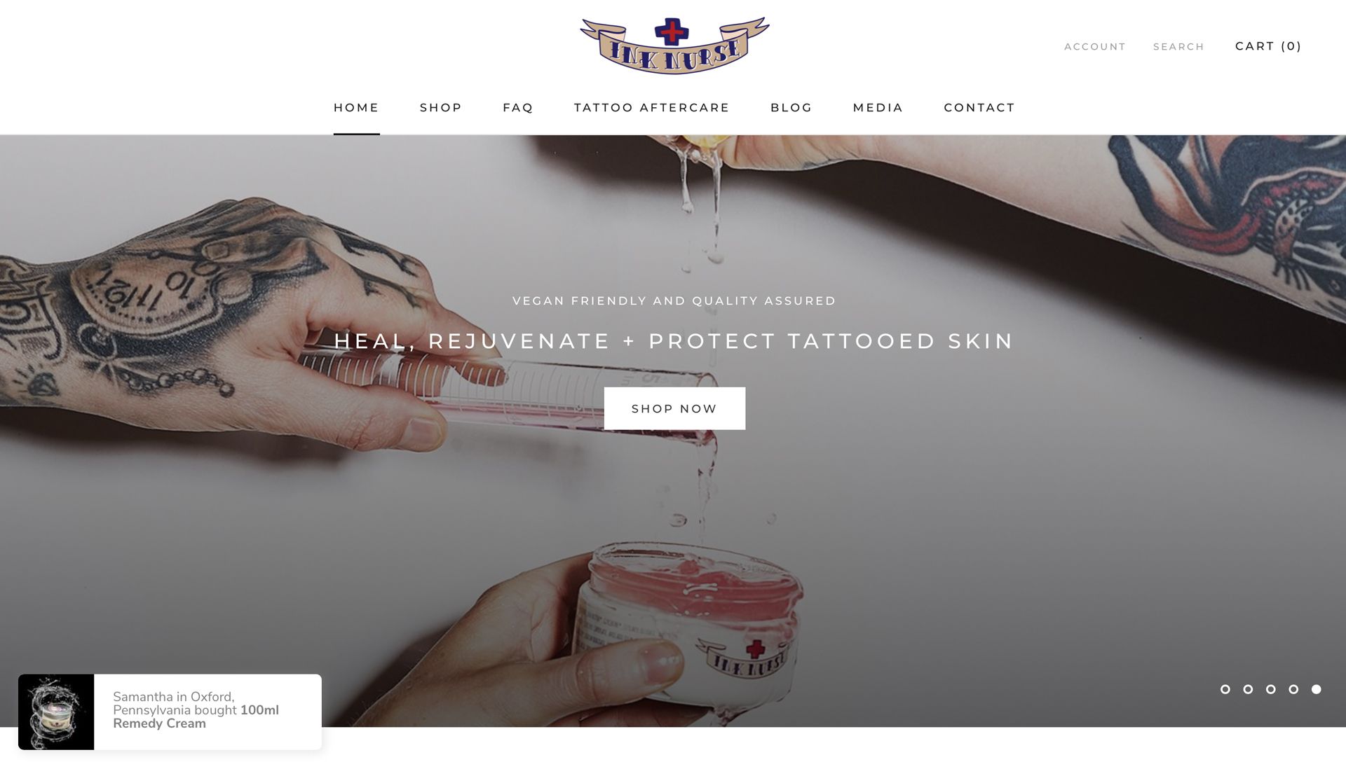 Ink Nurse is using Fomo to display recent purchases in real time.