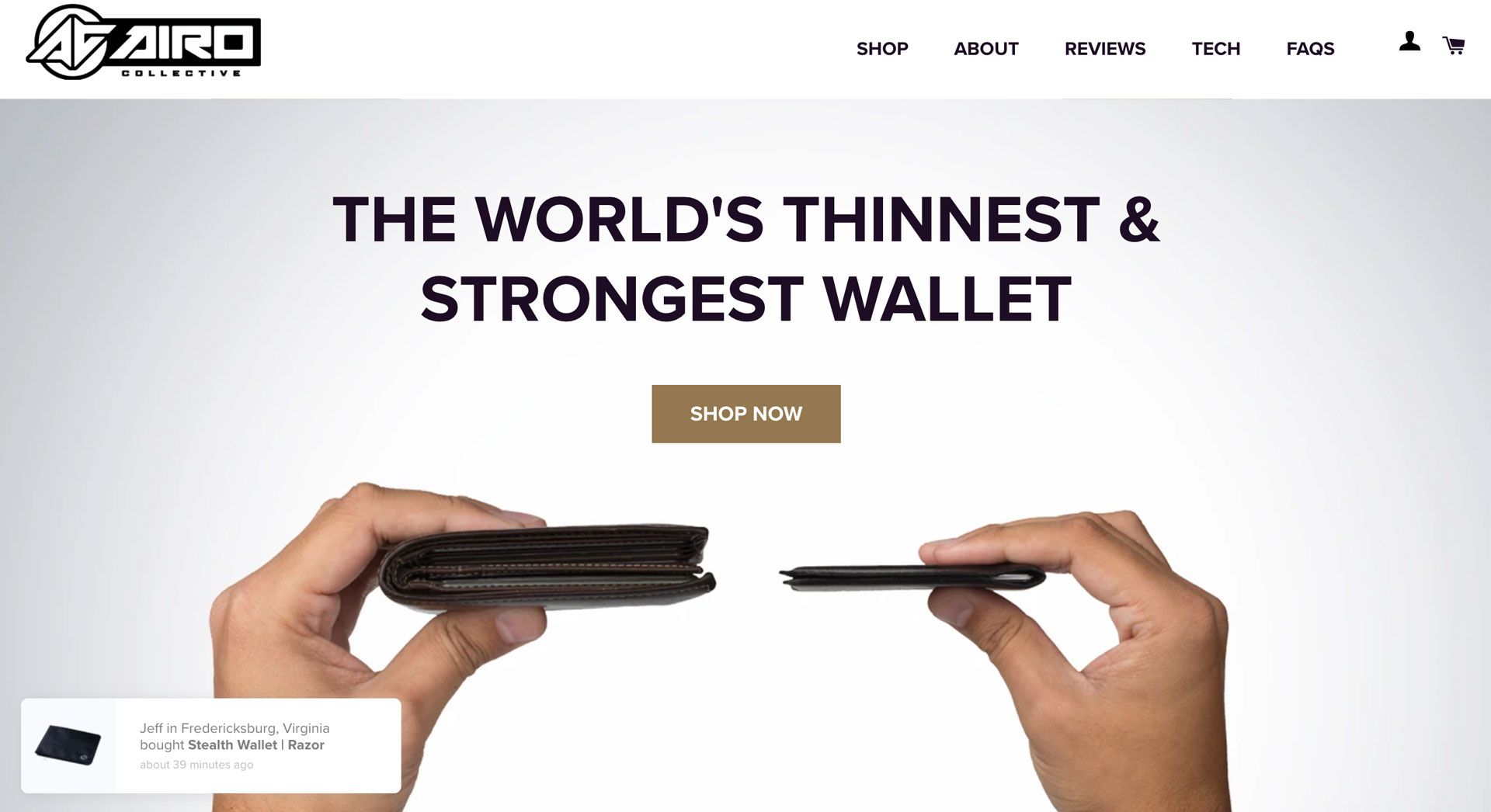 After founder Steve Schmidt realized he could fix this, he gathered his co-founder Jake Van Vorhis to launch Airo Collective. Their first product, the Stealth Wallet, was fully funded on Kickstarter in 9.5 hours. Their initial goal was $20,000. As of now, they’ve reached $286,445!