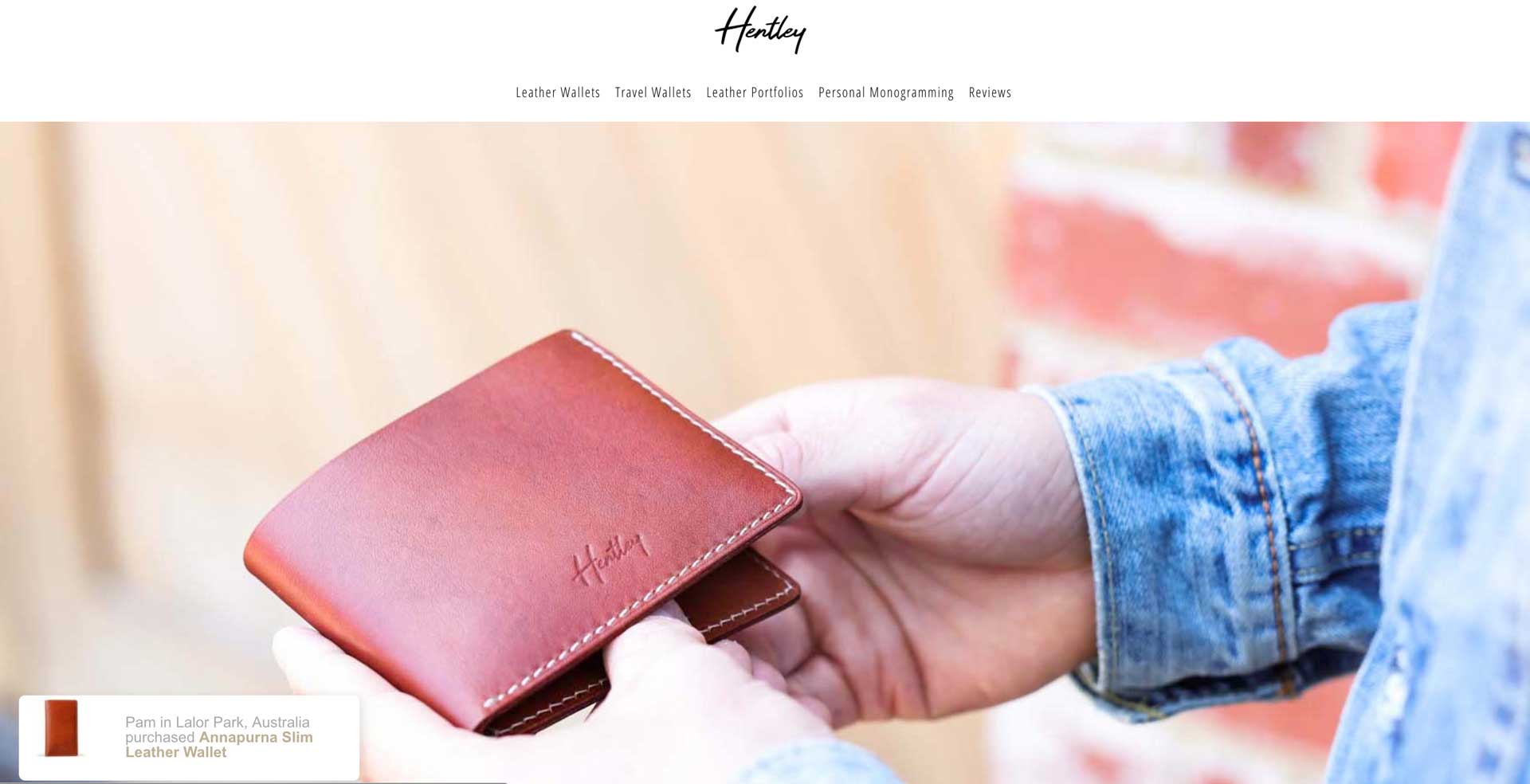 Fomo helps Hentley's click rate because specific products of theirs get showcased with a little notification at the bottom of the site, discreetly encouraging potential customers to buy what others are buying.