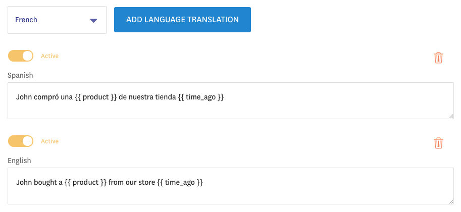 the way it works, is fomo fetches your website visitor's preferred language from their web browser, and looks up matching translations from your fomo account.