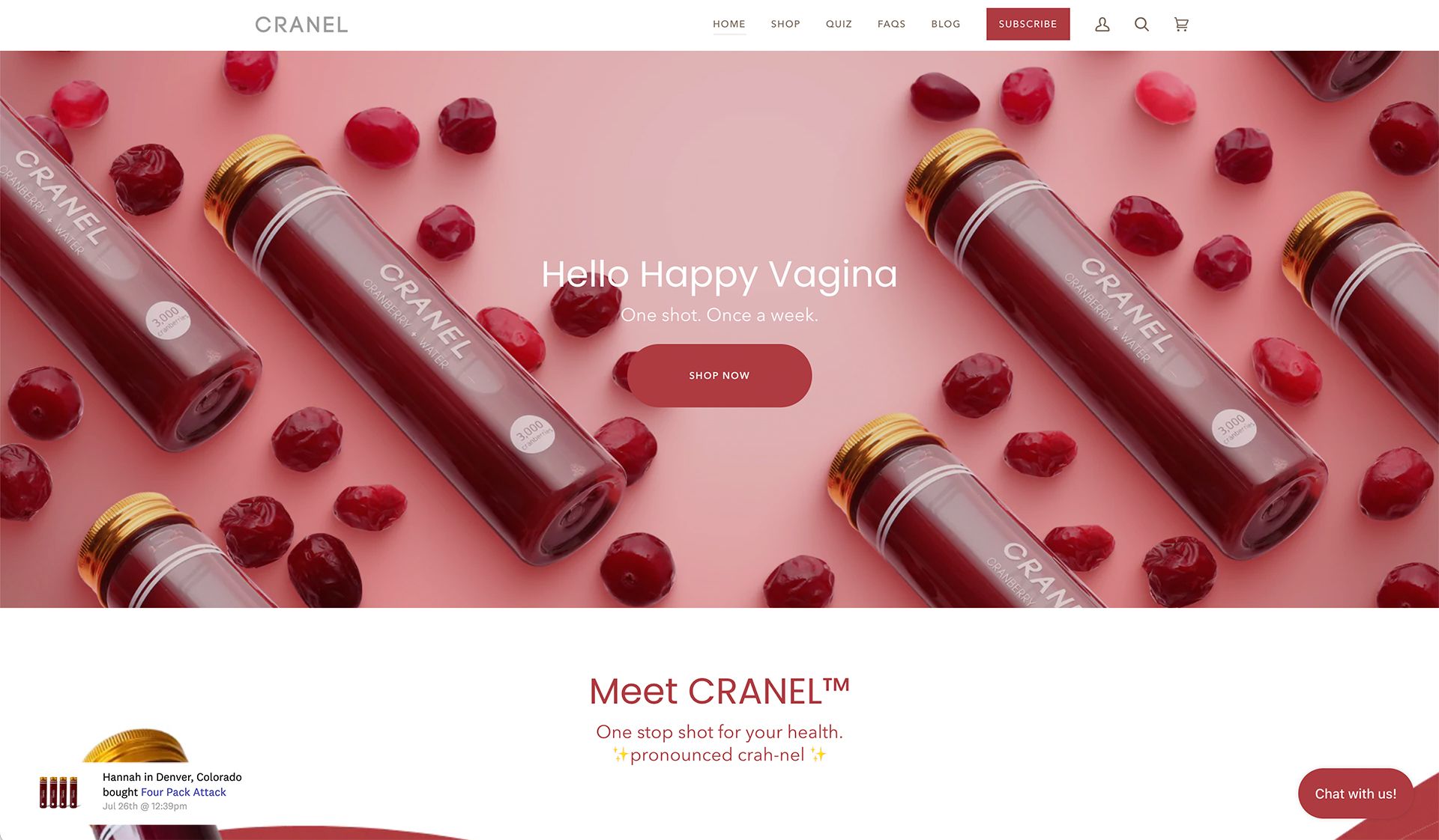 "We started Cranel in the midst of COVID in April 2020 and have since scaled our business across Australia and the US, helping thousands of women with this common problem. Cranel is a cranberry elixir that contains 3,000 cranberries and is clinically proven to flush out the bacteria that cause UTIs. Each shot has a pH of 4.0 to help rebalance pH and is packed with antioxidants for skin and hair. The shots are vegan, bio-active, non-GMO with zero added sugar, flavors, or colors."