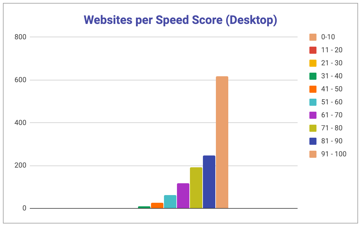 of 1,273 websites, only 4 had better mobile scores than desktop. unsurprisingly these websites had mobile scores of 97-100 and desktop scores of 89-96.
