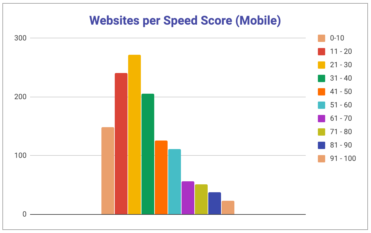 the average desktop score across 1,273 websites sampled was 84.94, but the average mobile score was 34.39.