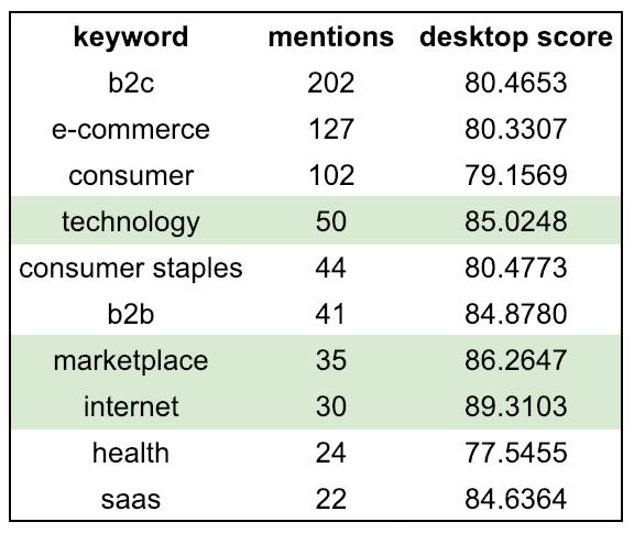 tech-centric websites perform better but don't need to, while ecommerce websites perform worse and stand to benefit more.
