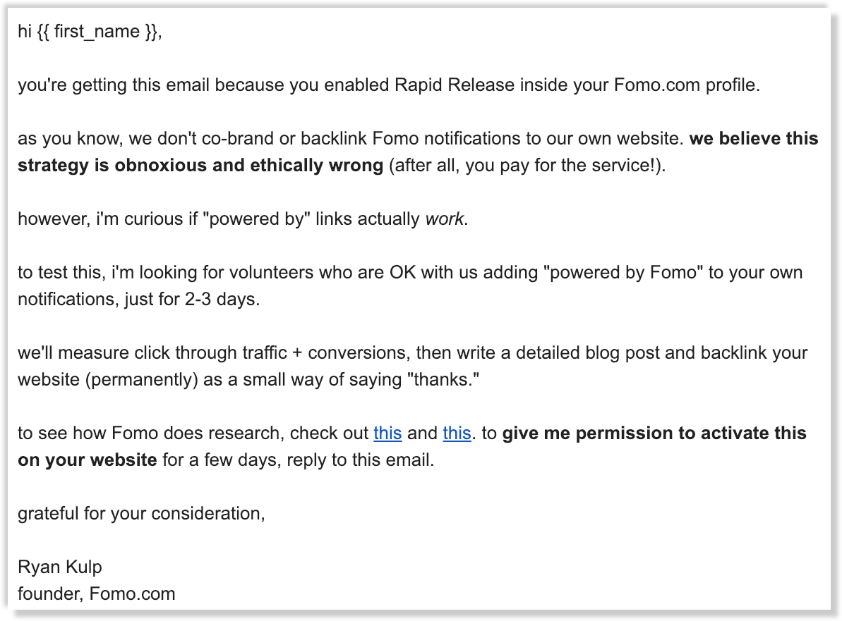i hooked up all 34 websites with a "Powered by Fomo" backlink, which (when clicked) sent their visitors to fomo.com/superpowers.
