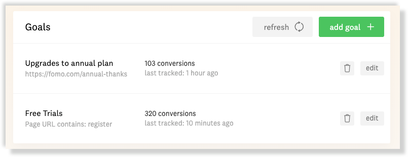 create as many goals as you'd like, and tracking will begin immediately.