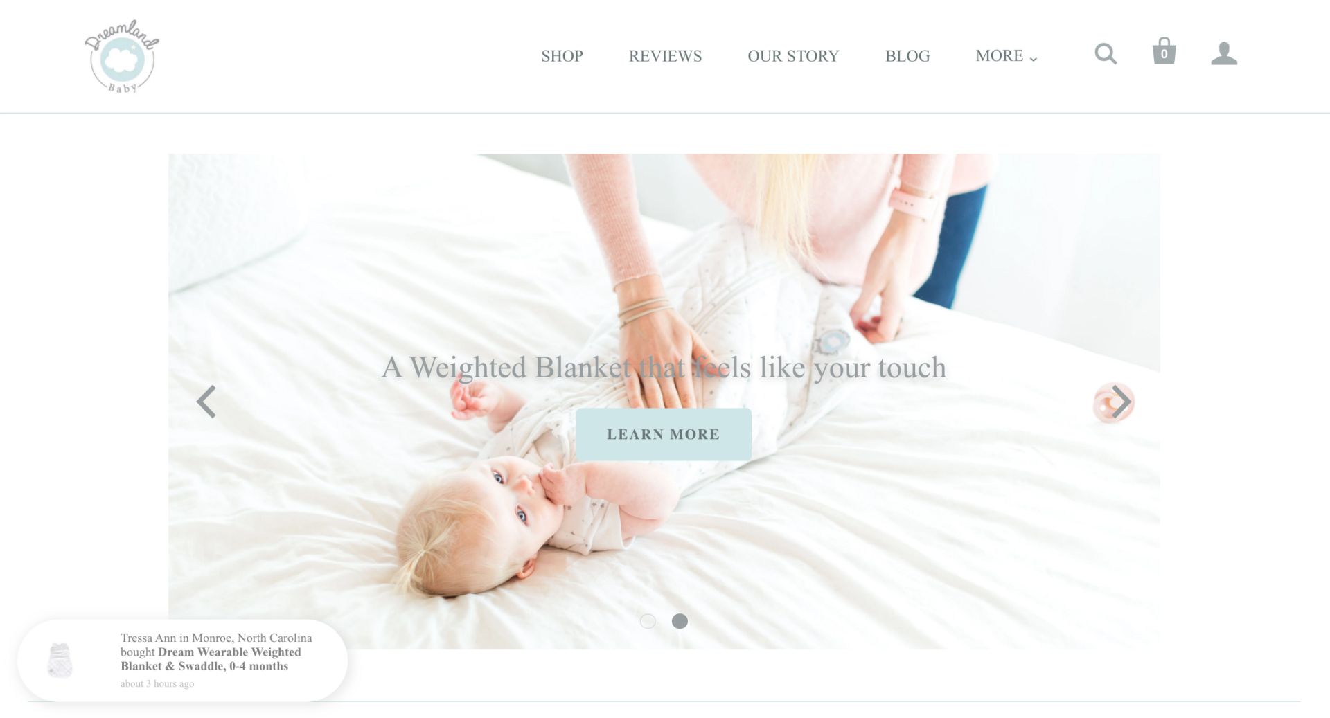 Dreamland Baby is the world’s first safety certified wearable weighted blanket and weighted swaddle perfectly calibrated for infants.